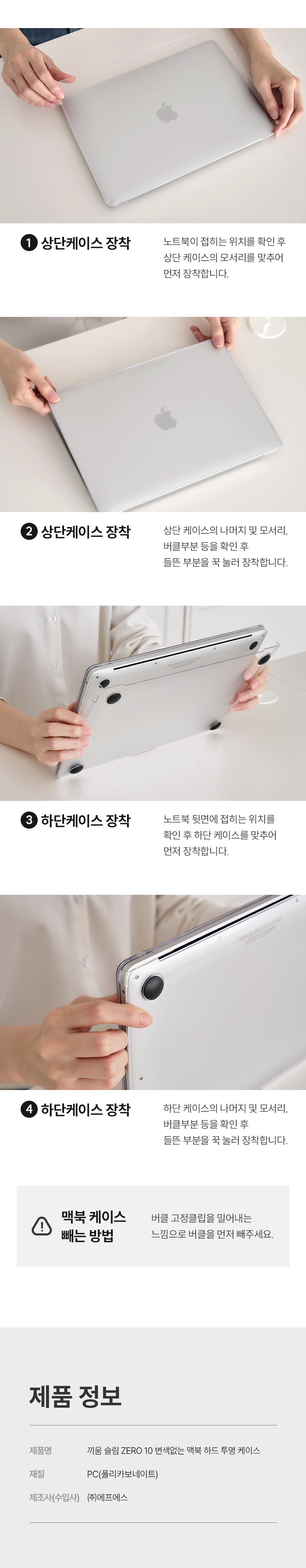 끼움 변색없는 zero1.0 고투명 AF코팅 초슬림 맥북케이스